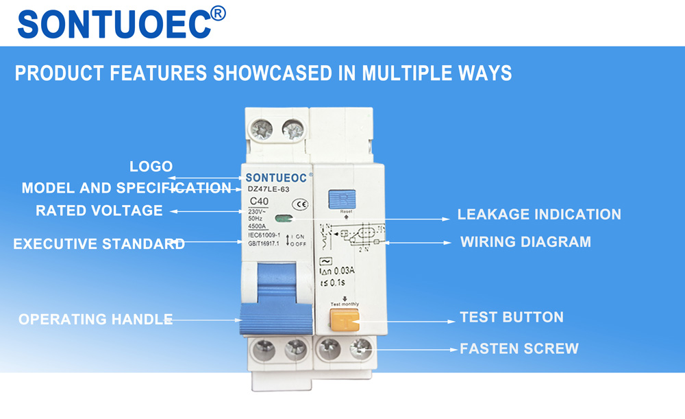SONTUOEC is ien fan 'e Sineeske leveransiers/fabrikanten dy't spesjalisearre binne yn' e produksje fan ferskate lytse elektryske apparaten. 4 poal en rated stream oant 63A. It kin de line en motor beskermje foar oerbelêsting en koartsluting It kin ek brûkt foar seldsum line konverzje en seldsum motorstart. It konform mei de noarmen fan IEC61009.1.