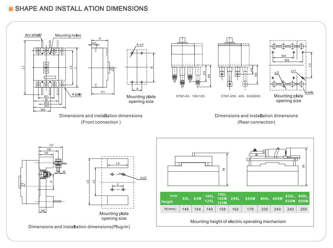 | Rated Curert hn(A) | 16,20,25,32,40,50 | 100,125,140,160, | 250.315.350.400 | 400.500.630 | 630.700.800 | 80.010.001.250 | |||||||||||||